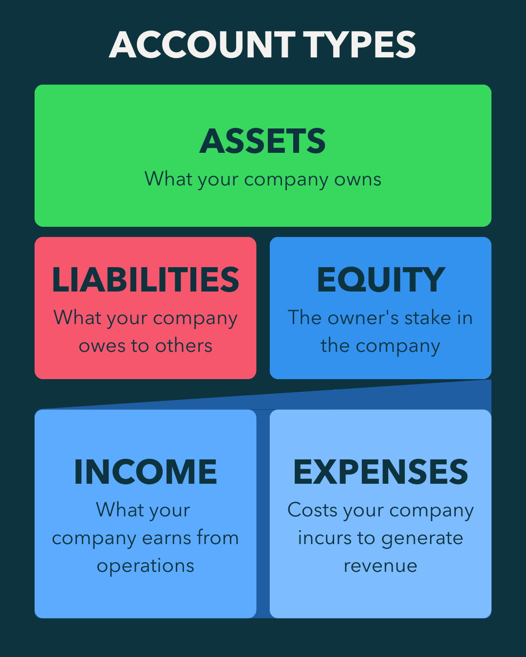 The accounts you need for any business, regardless of industry or size, are built upon five fundamental account categories.